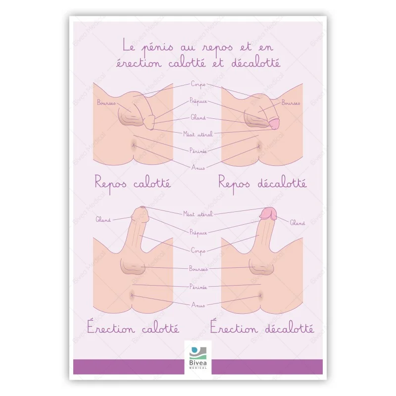 Ce poster est idéal pour présenter le pénis sous différentes formes : calotté ou décalotté, au repos ou en érection. Cette affiche peut être un support de communication pour différentes thématiques :